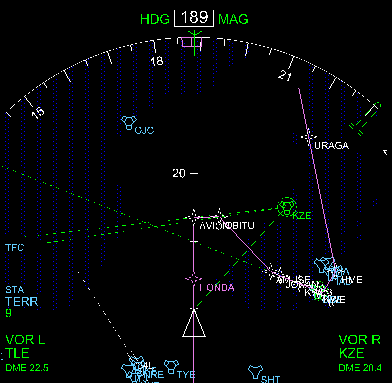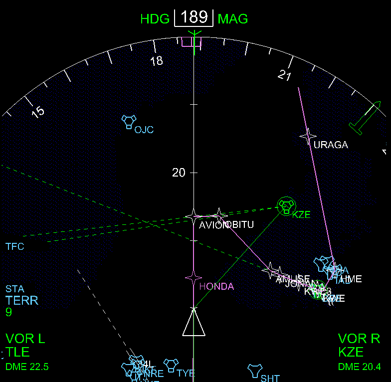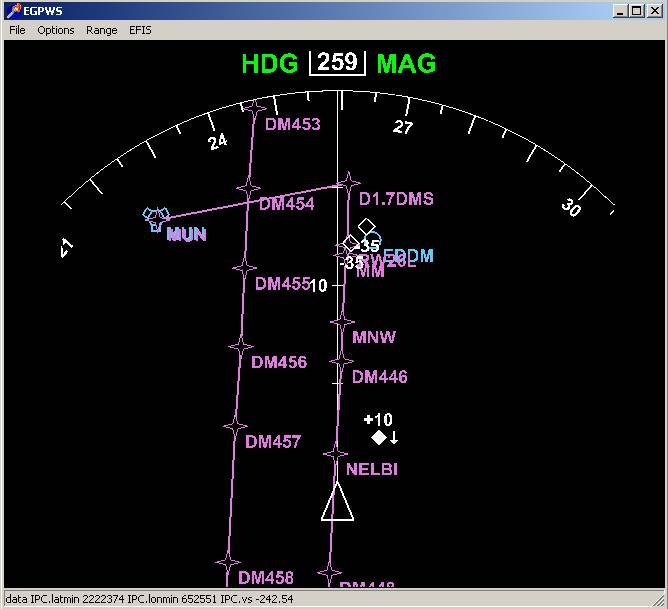 Early work on display of the FMC route in the external ND. The route shows an RNAV transition