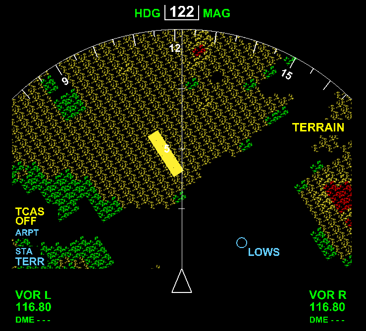 terrain profile displayed on a VSD. The image shows that a terrain caution alert