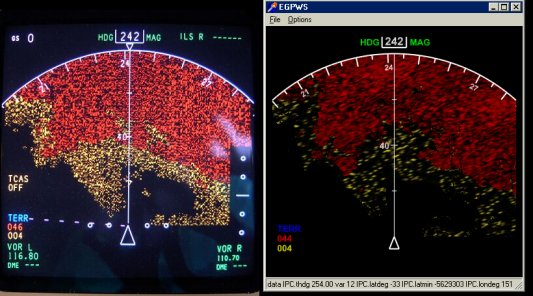 Right: Situational awareness approach Kathmandu airport with EGPWS and VSD activated. (Note:
