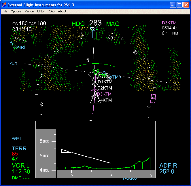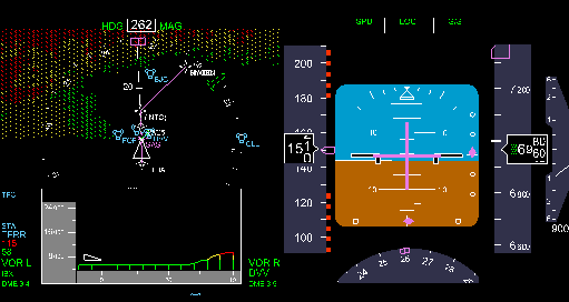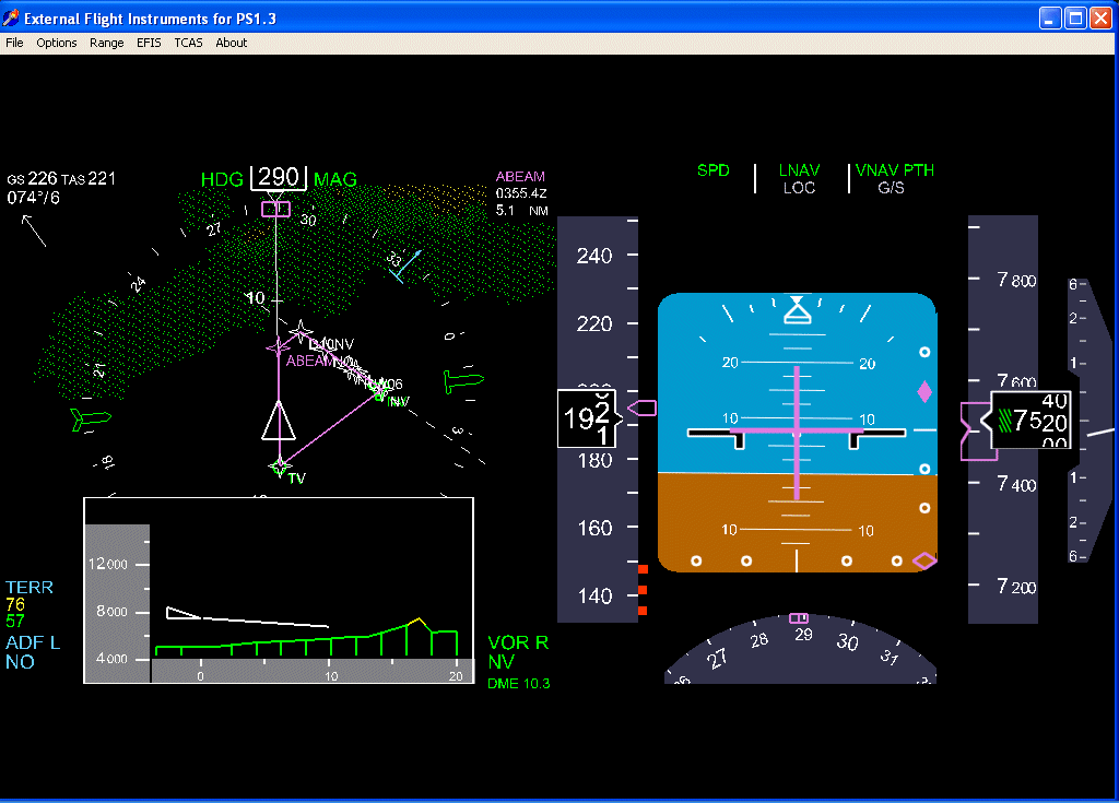 right hand side shows a simulation using the 'External PS1.3 Flight Instruments'.