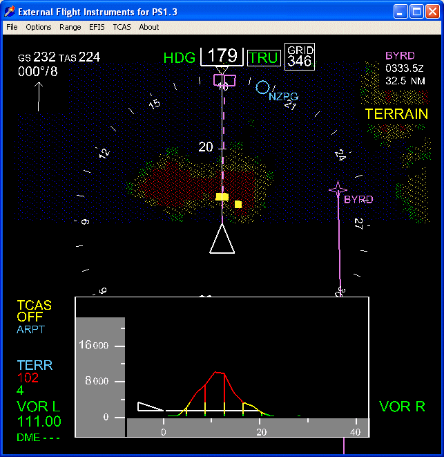Situation Display nicely shows the Rocky Mountains 30 nautical miles away.